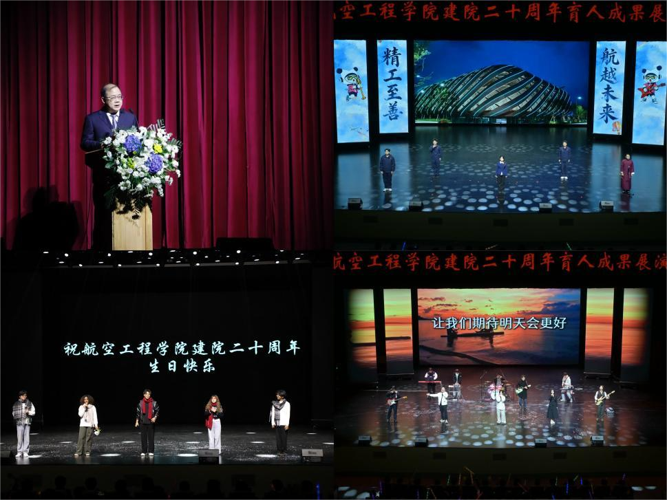 展演以三大篇章为核心脉络,生动诠释了学院二十年发展长卷。“溯源·启航”篇章回溯了学院从专科初创到本科深耕、研究生培育的跨越式发展,复刻初心之路;“笃行·奋进”篇章聚焦师生在教学科研、学科竞赛中的拼搏身影,彰显实干担当;“擎画·新程”篇章传递面向未来的坚定信念,奏响民航强国建设的奋进之歌,全方位展现工院人“精工至善、航越未来”的精神内核。